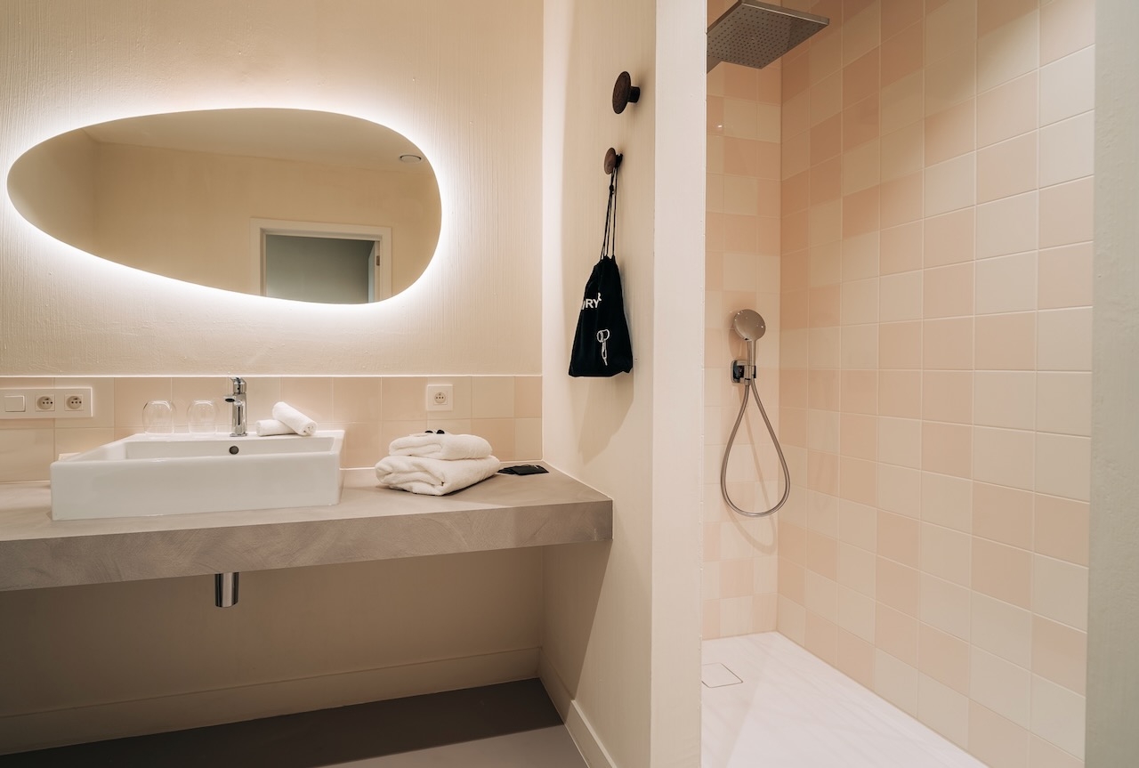 De ruime Terras kamers (38 m²) hebben een privéterras met uitzicht op de tuin, eigen entree en zijn voorzien van 1 tweepersoonsbed, televisie, wifi, bureau, kluisje, koffie- en theefaciliteiten, koelkast, airconditioning, verwarming, kast en badkamer met inloopdouche, bad, toilet, wastafel, haardroger en gratis toiletartikelen.