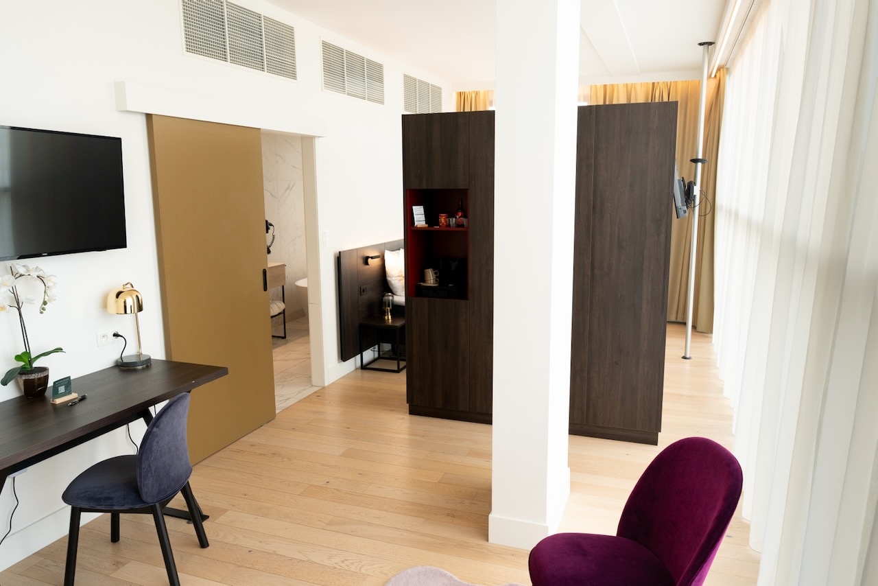 De zeer ruime Junior suites (46 m²) zijn voorzien van 1 tweepersoonsbed of 2 eenpersoonsbedden, gratis WiFi, telefoon, extra grote flatscreen-tv, thee- en koffiefaciliteiten, minibar, bureau, laptopkluisje, kast, airconditioning en badkamer met inloopdouche, ligbad, toilet, haardroger en gratis toiletartikelen.
