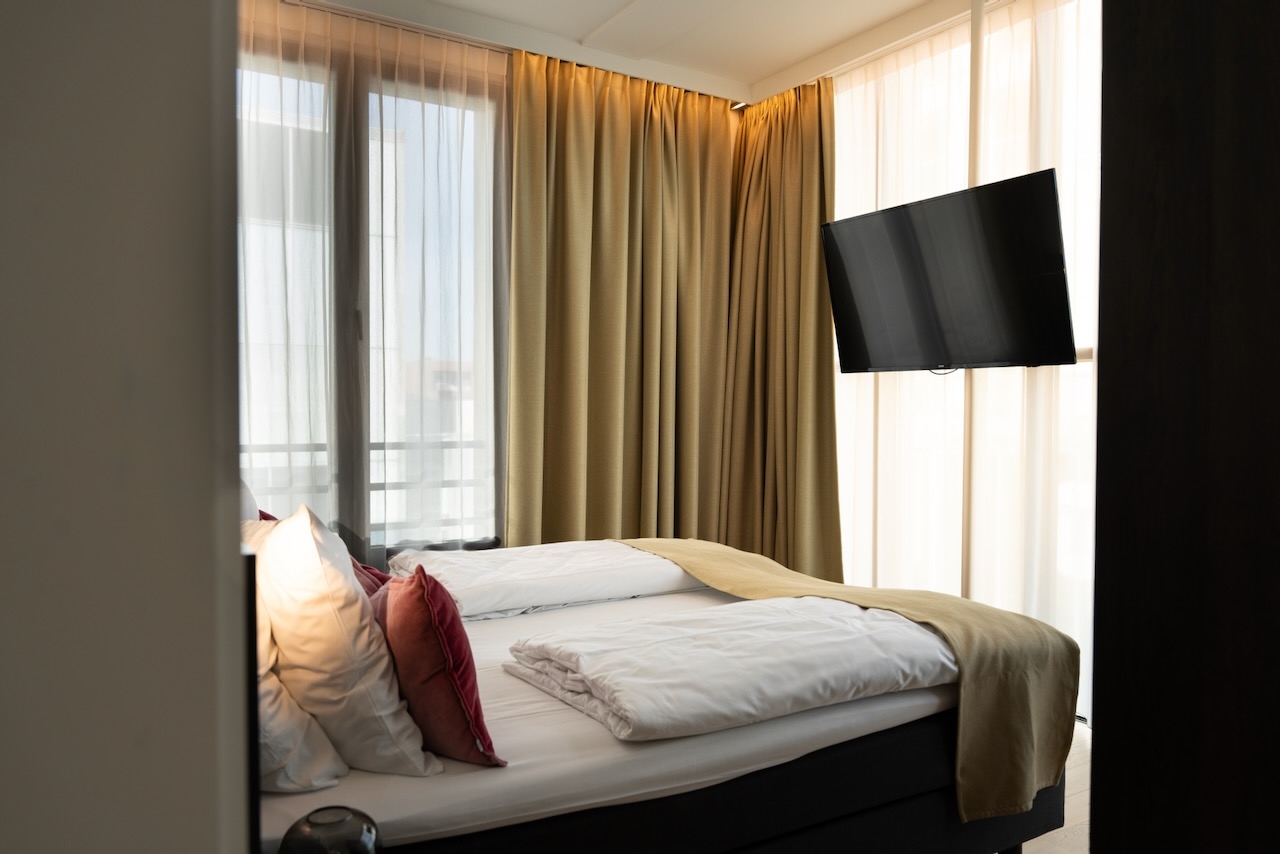 Begin de dag goed met een lekker ontbijt. Er staat elke ochtend een zeer uitgebreid ontbijtbuffet voor je klaar. Het hotel heeft een samenwerking met gastronomische restaurants van Chef-kok Alex Verhoeven, allemaal op zeer korte wandelafstand van het hotel. Het gastronomische Restaurant Hert bevindt zich op de 18e verdieping (72 meter hoog) van de Turnova toren. Hier kun je uitgebreid tafelen, met overweldigend uitzicht op de stad en de groene Kempen. Restaurant Bink bevindt zich direct tegenover het hotel.
