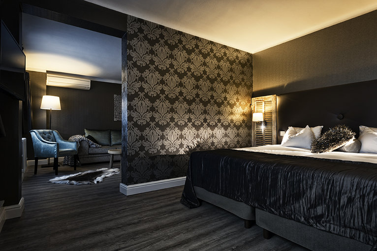 De zeer ruime Deluxe kamers (35 m2) zijn voorzien van aparte zithoek, flatscreen televisie, werkplek, minibar, gratis WIFI, airconditioning, verwarming, kluis en ruime badkamer met bad/douche combinatie, toilet, dubbele wastafel, haardroger en gratis toiletartikelen.