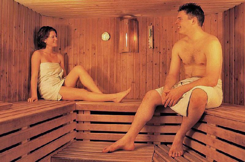 » Sauna-sloffen zijn verkrijgbaar bij de receptie