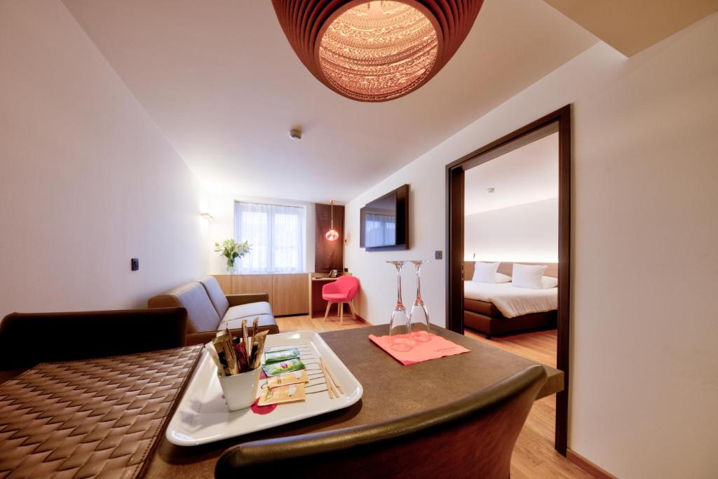 De zeer ruime split-level Appartementen Gaume/Orval/Semois (ca. 50 m2) hebben een eiken parketvloer en een apart slaapgedeelte in de mezzanine en zijn voorzien van 1 tweepersoonsbed met beddengoed van hoge kwaliteit, zithoek met slaapbank, ingerichte kitchenette, koelkast, airconditioning, flatscreen televisie, bureau, wifi, minibar, koffie- en theefaciliteiten, apart toilet, kluisje en badkamer met bad/douche combinatie, wastafel, haardroger en toiletartikelen.