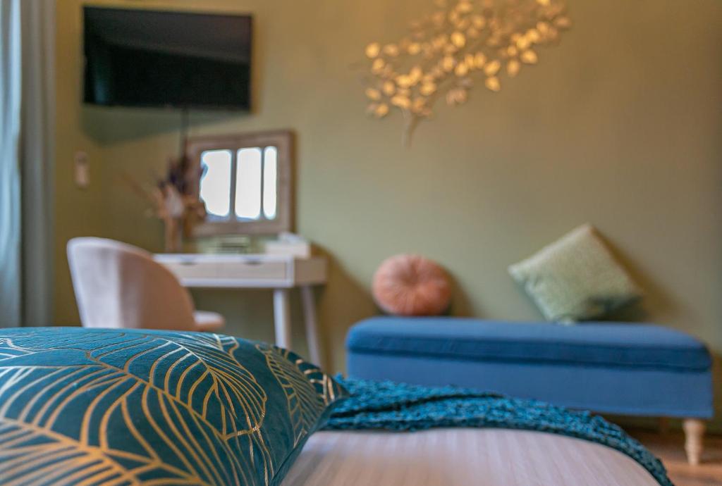 Deze luxe kamer is ingericht in Provence stijl en voorzien van 1 tweepersoonsbed, airconditioning, balkon, bureau, verwarming, wifi, televisie, badjas, slippers, vrijstaand bubbelbad, toilet, wastafel, haardroger en toiletartikelen.