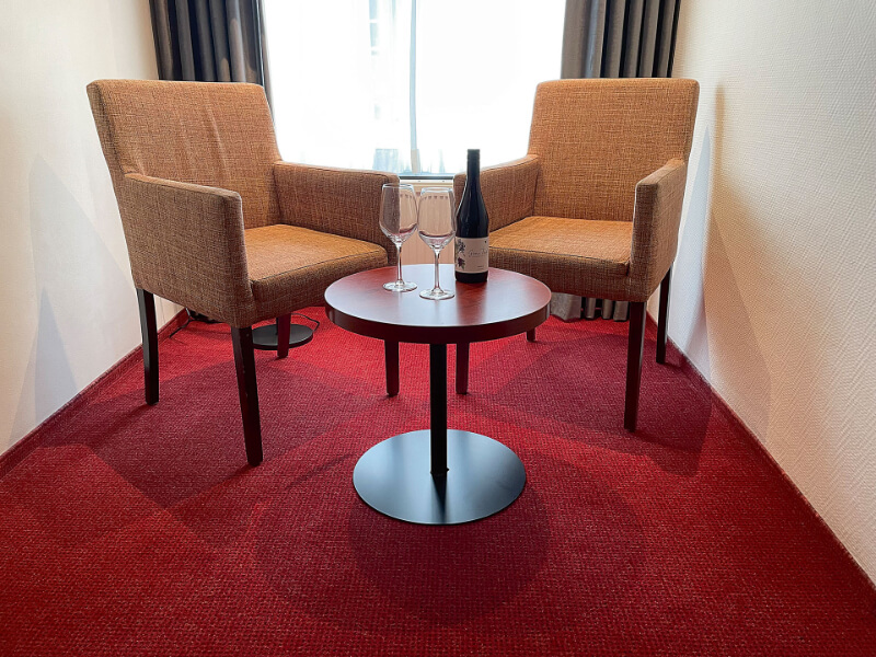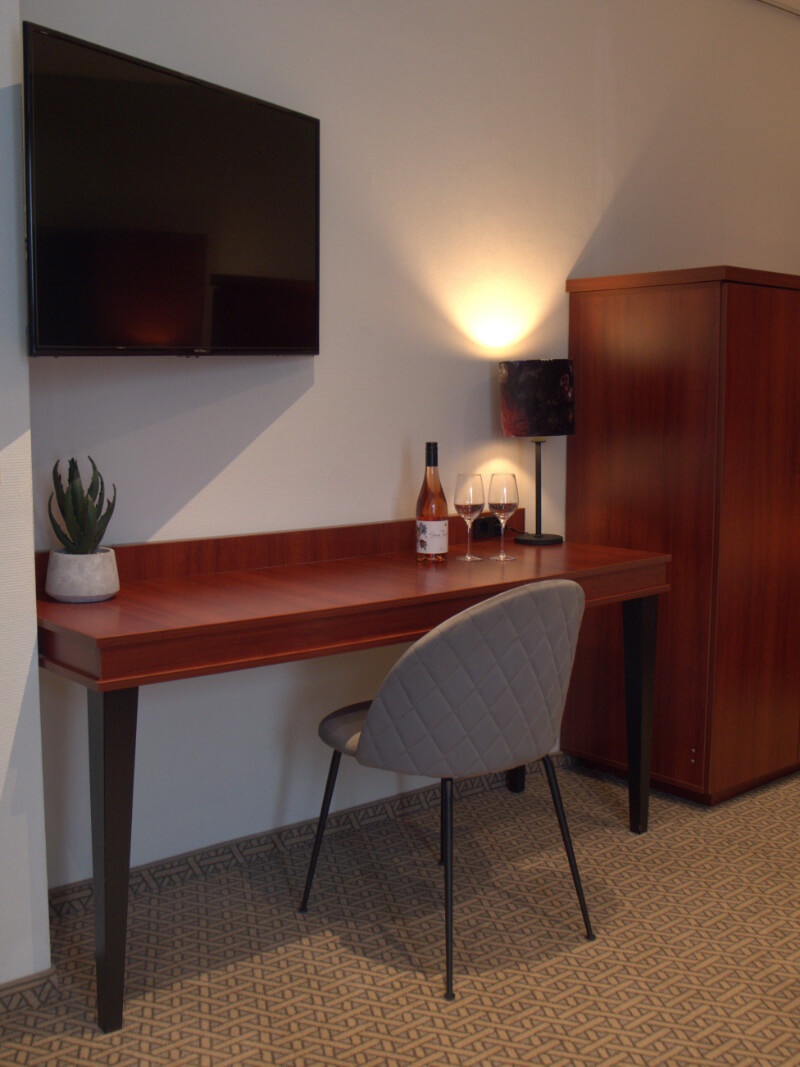 Deze Standaard kamers (22 m2) bevinden zich in het hoofdgebouw en zijn voorzien van 2 eenpersoonsbedden, flatscreen televisie, kluisje, wifi, kast, verwarming, ventilator, bureau, zithoek, radio, wekdienst en badkamer met douche of bad, toilet, wastafel en haardroger.