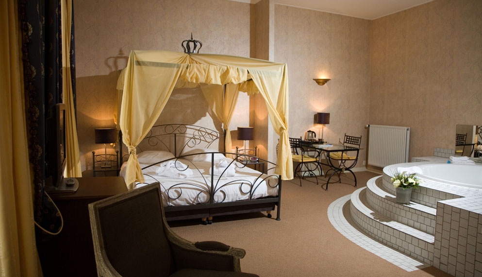 De romantische Luxe Suite bevindt zich op de eerste etage van het Paleis. Deze riante suite is voorzien van 1 tweepersoons boxspringbed, flatscreen televisie, wifi, telefoon, wekker, koffie- en theefaciliteiten, badjas, slippers en badkamer met bad, douche, toilet, wastafel, haardroger en toiletartikelen.