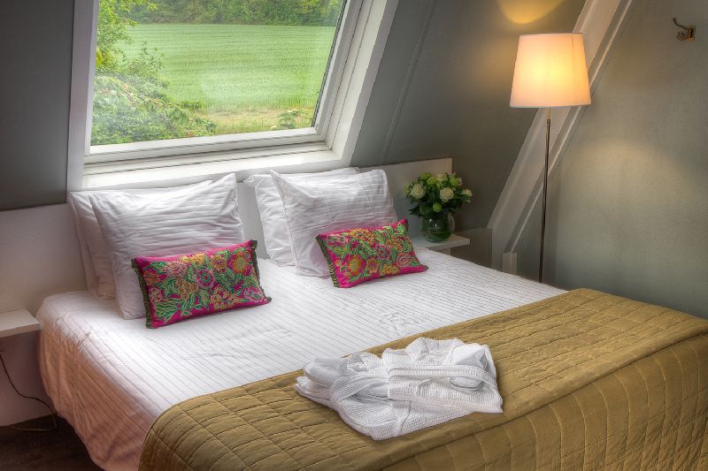 De eenpersoonskamer biedt uitzicht over de weilanden en is voorzien van een comfortabel bed, gratis WiFi, gebruik van bronwater, NESPRESSO koffie en DAMMANN thee, badjas, badslippers en ruime badkamer met bad of douche, toilet, haardroger en exclusieve RITUALS verzorgingsproducten.
