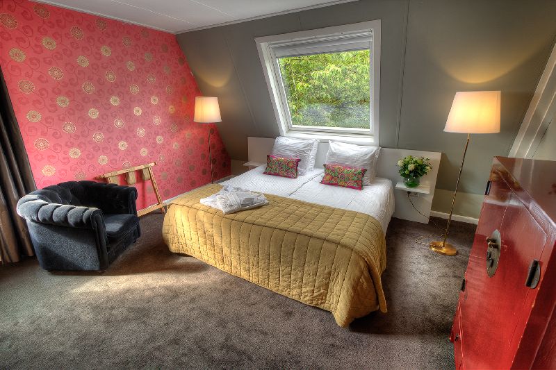 De hotelkamers zijn stijlvol ingericht met hedendaagse kunst.