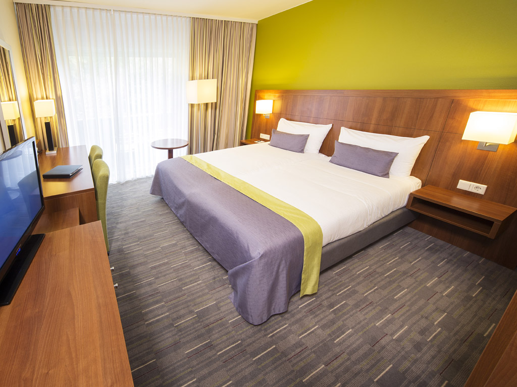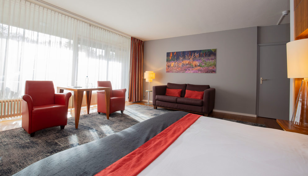 De ruime hotelkamers van Fletcher Hotel-Restaurant De Buunderkamp zijn comfortabel ingericht, een goede basis voor een ontspannen hotelarrangement bij de Veluwe.