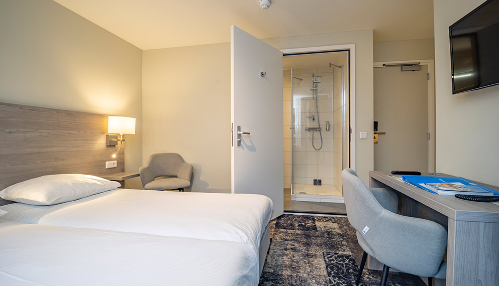 De modern en comfortabel ingerichte Comfort kamers zijn voorzien van 2 eenpersoons boxspringbedden, gratis WiFi, televisie, zitje, kluis, telefoon en badkamer met douche, wastafel, toilet, haardroger en toiletartikelen.
