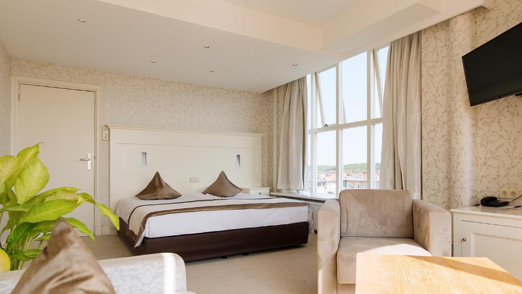 De Deluxe kamers (ca. 19 m²) hebben uitzicht op zee of over de duinen en sommige kamers beschikken over een balkon of terras. De kamers zijn verder voorzien van 1 tweepersoonsbed of 2 eenpersoonsbedden, flatscreen televisie met kabelaansluiting, föhn, elektronisch kluisje, telefoon en badkamer met toilet, wastafel en bad of douche. Enkele kamers met verbindingsdeur voor familiekamer.