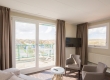 De ruime, modern ingerichte Junior suites zijn voorzien van balkon met prachtig uitzicht op de duinen, tweepersoonsbed, flatscreen televisie, radio, wekker, wifi, zithoek, slaapbank, bureau, telefoon en badkamer met bad, toilet, wastafel en toiletartikelen.