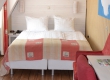 De sfeervol en modern ingerichte kleine tweepersoonskamers liggen aan de rustige achter- of patiozijde van het hotel en zijn voorzien van 2 eenpersoonsbedden (2.10m lang), televisie, telefoon, wifi, bureau en badkamer met douche, toilet, haardroger en toiletartikelen.