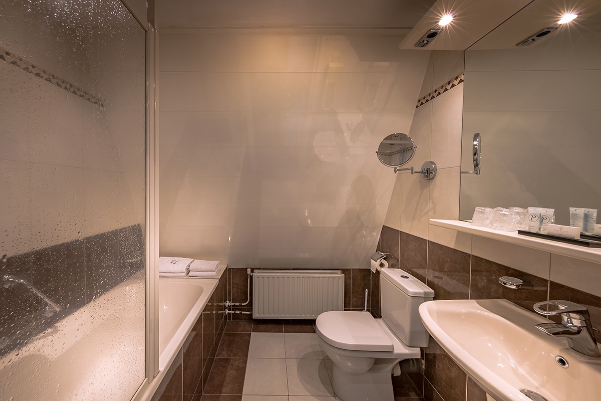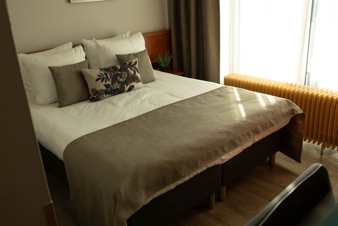 De gezellig ingerichte kleine Comfort kamers (15 - 20 m²) zijn gerenoveerd en voorzien van 2 eenpersoons boxspringbedden, wifi, 1 stoel, bureau, verwarming, kluisje, flatscreen televisie, radio, koffie- en theefaciliteiten, airconditioning, badjassen, ophangsysteem voor kleding en badkamer met inloopdouche, apart toilet, wastafel, haardroger en toiletartikelen.