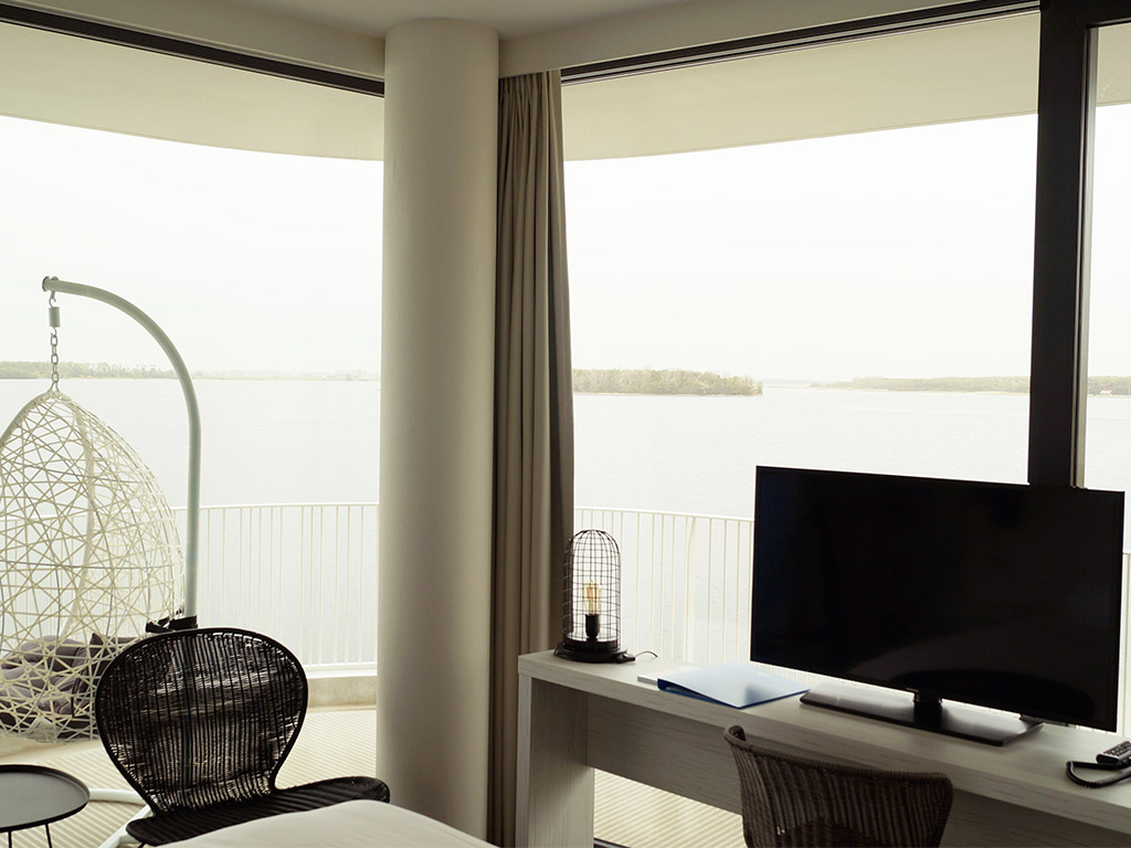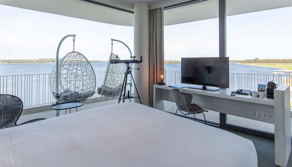Deze ruime Superior kamers (25 m2) hebben uitzicht op het Veerse Meer en zijn voorzien van 1 kingsize tweepersoonsbed, balkon, flatscreen televisie, wifi, koelkast, bureau, zithoek, koffie- en theefaciliteiten, kluisje, klimaatsysteem en badkamer met bad, douche, toilet, wastafel en haardroger.